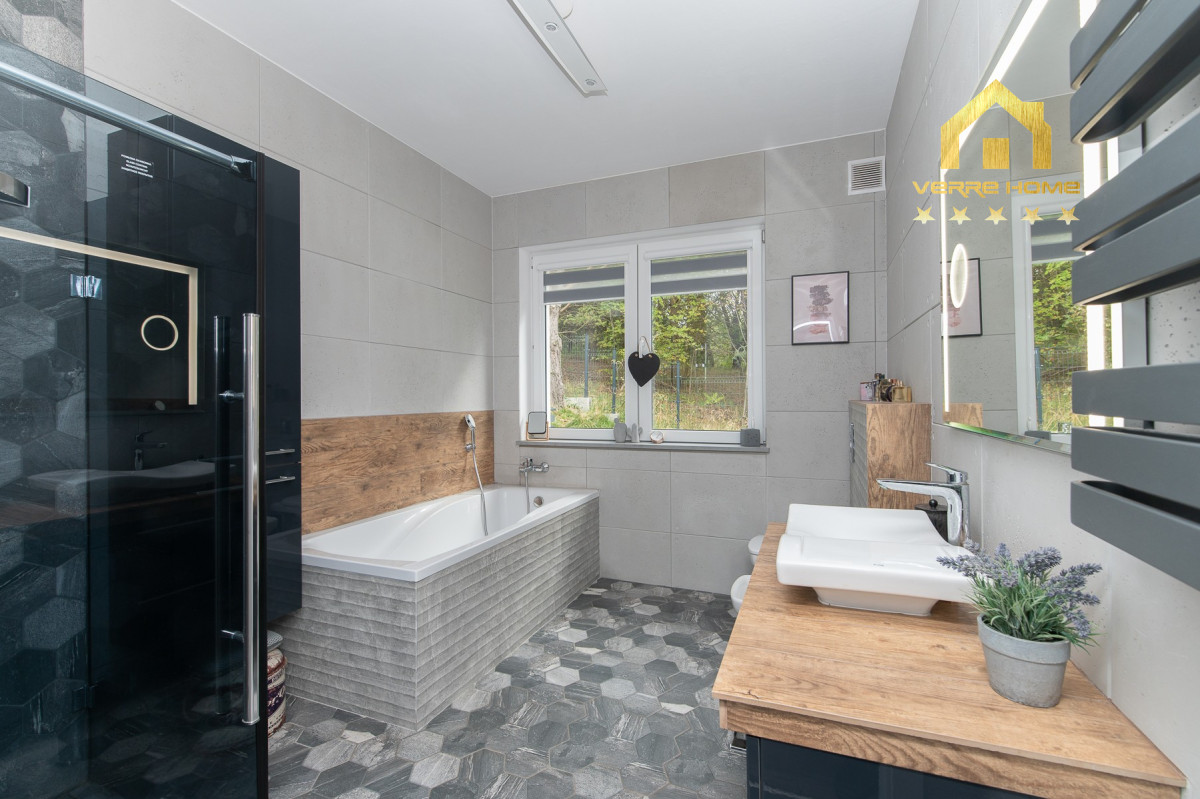 BUDYNEK:Dom wybudowany w 2020 roku w technologii budynków pasywnych. Postawiony na działce 750 m2 - pełna dokumentacja. Cała nieruchomość wykonana z największą starannością. Przygotowane i położone dodatkowe instalacje gotowe na podłączenie paneli solarnych do podgrzania wody oraz paneli solarnych do zasilania domu w energię elektryczną. Ocieplenie budynku wykonano styropianem grafitowym o grubości 20 cm. Okna trzy szybowe, wypełnione gazem. W garażu zamontowana stacja uzdatniania wody z metali ciężkich wraz z lampą UV. Dookoła budynku dużo zieleni. Teren ogrodzony z bramą wjazdową otwieraną na pilota, drzwi garażowe także na pilota.