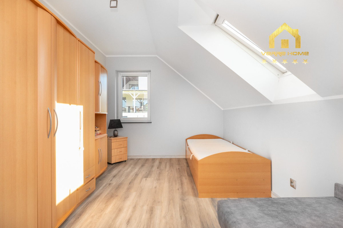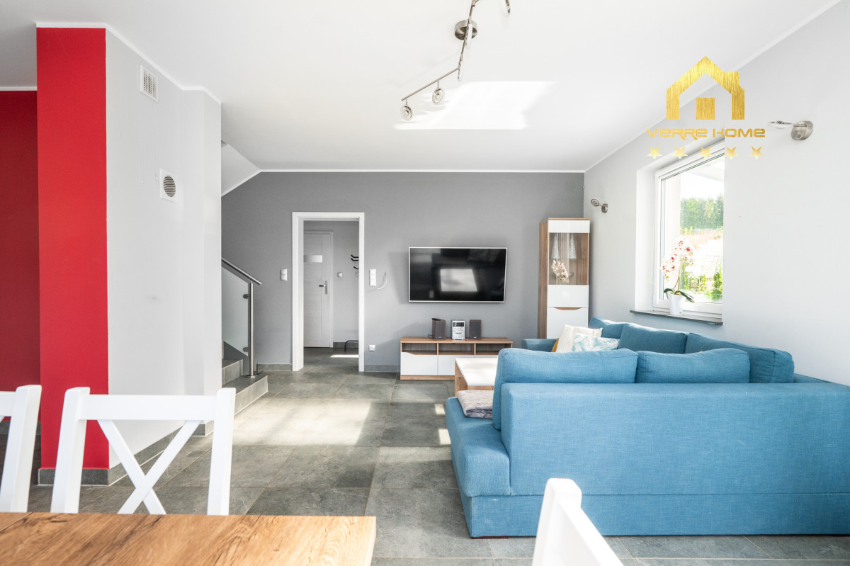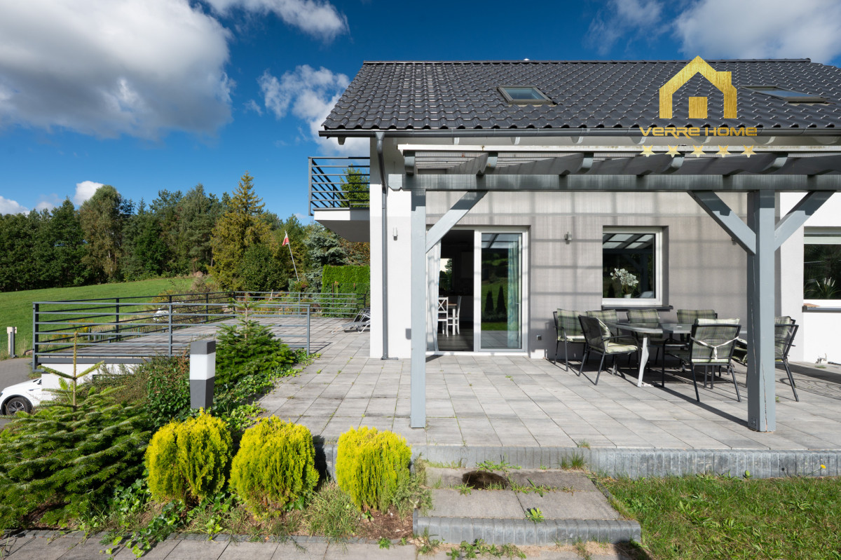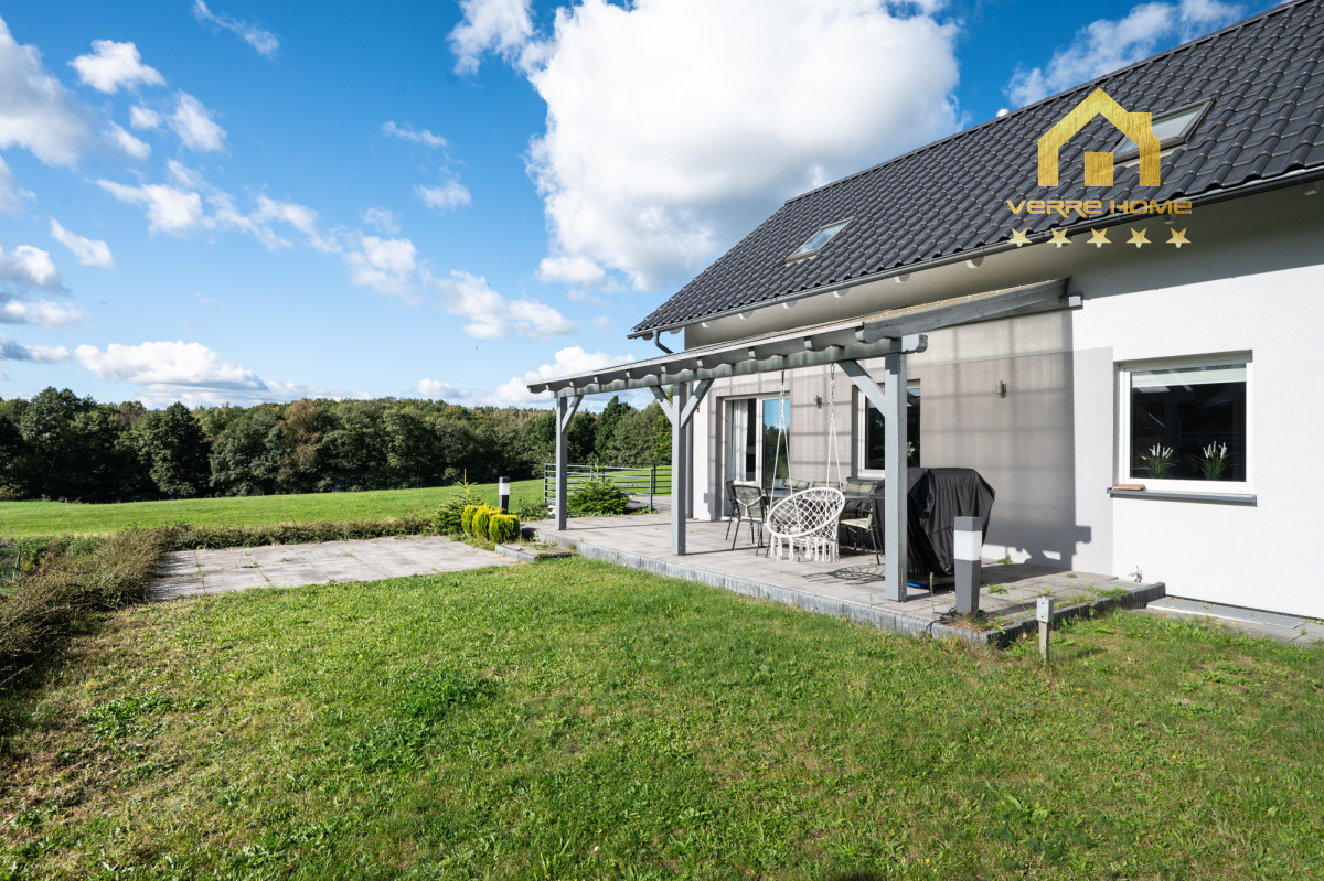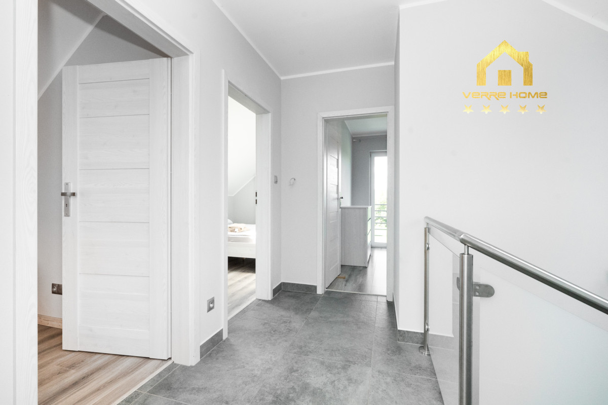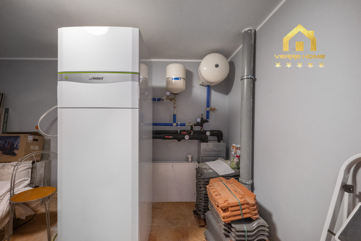 Postawiony w 2023 roku, o powierzchni użytkowej 187 m2, posiada dużą pompę gruntową marki Vaillant, która odpowiada za podgrzanie wody ciepłej oraz ogrzanie budynku. Dom energooszczędny. Budynek składa się z 3 kondygnacji.