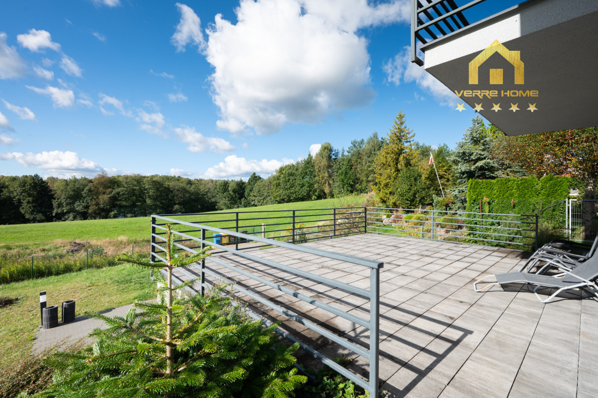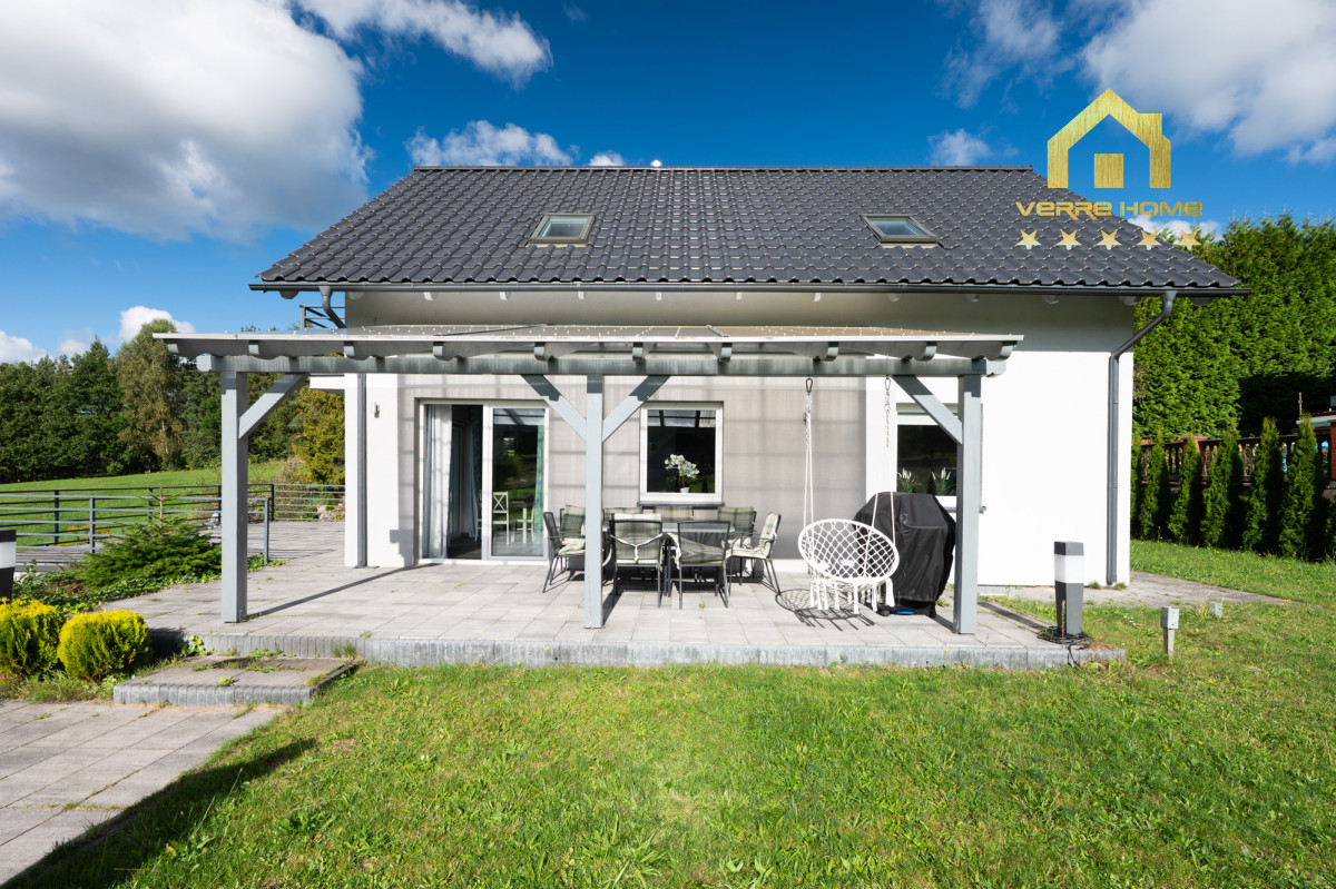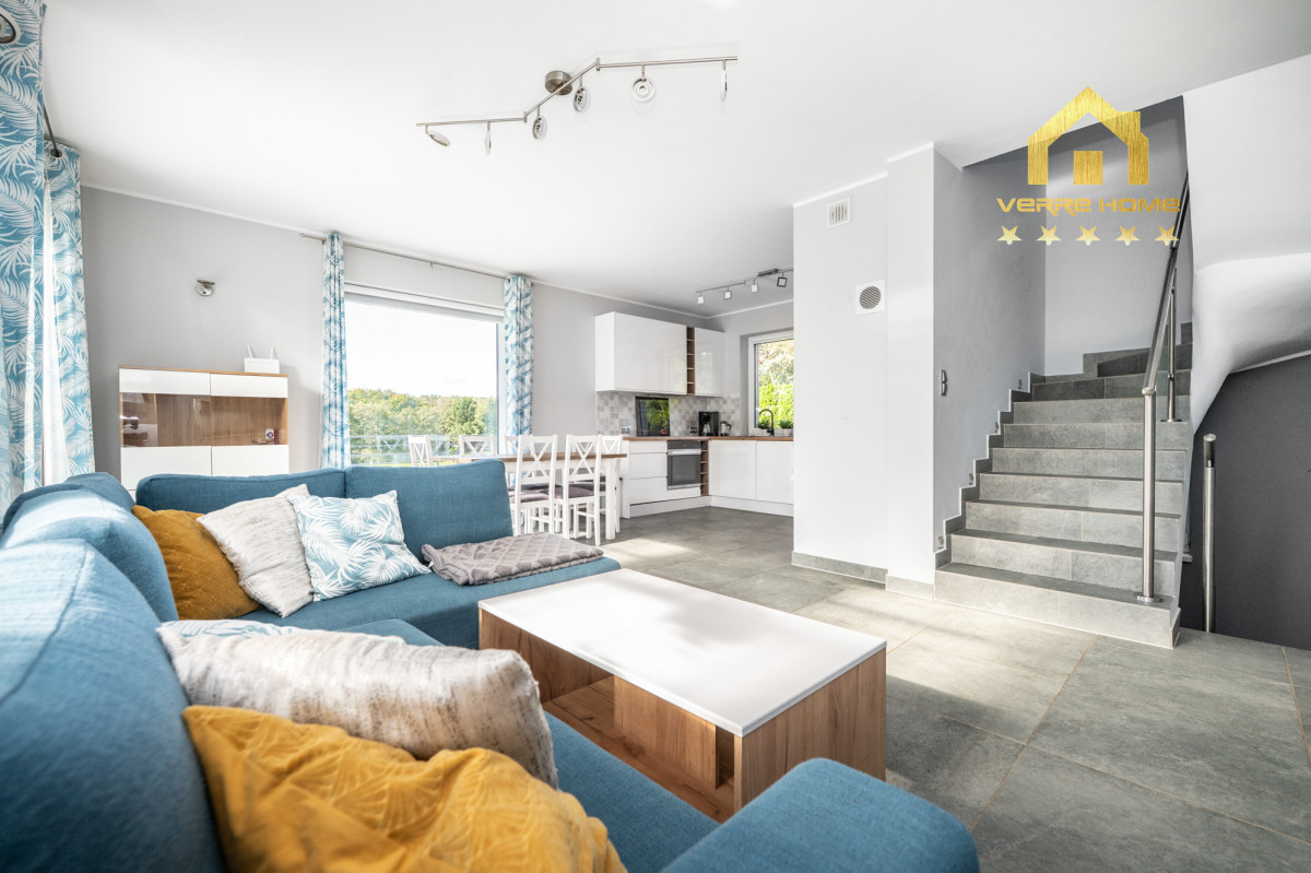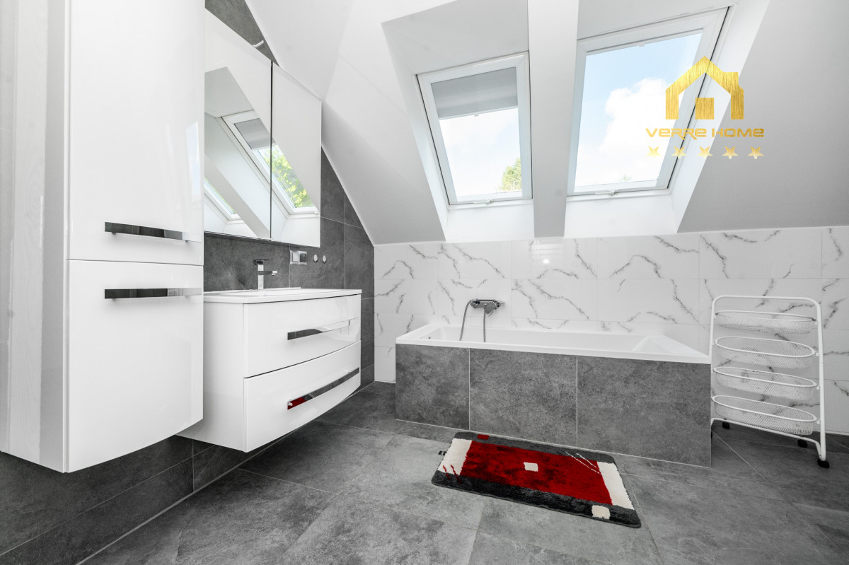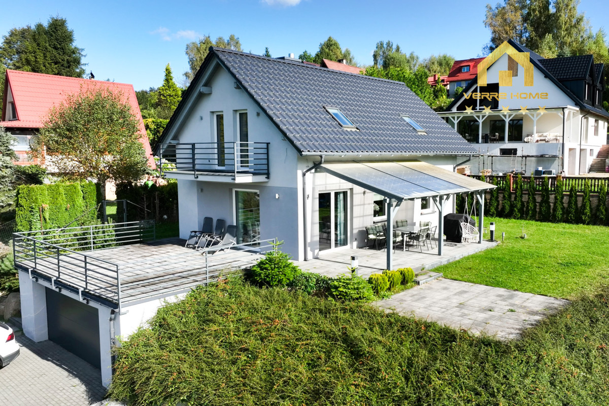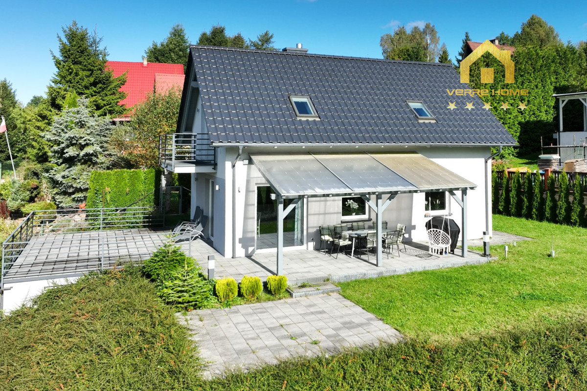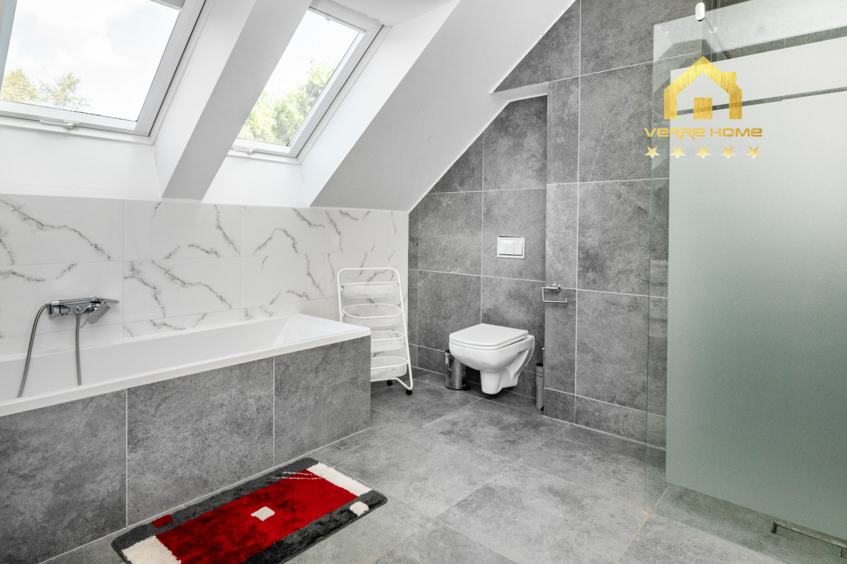 Postawiony w 2023 roku, o powierzchni użytkowej 187 m2, posiada dużą pompę gruntową marki Vaillant, która odpowiada za podgrzanie wody ciepłej oraz ogrzanie budynku. Dom energooszczędny. Budynek składa się z 3 kondygnacji.